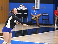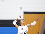 Sophomore libero Aliya Lugo-Navas serves for the Pirates. Photo by Brent Woronoff