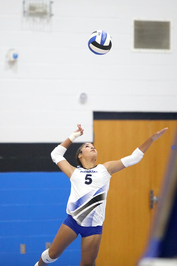 Matanzas sophomore setter Analise Smith serves. Photo by Brent Woronoff