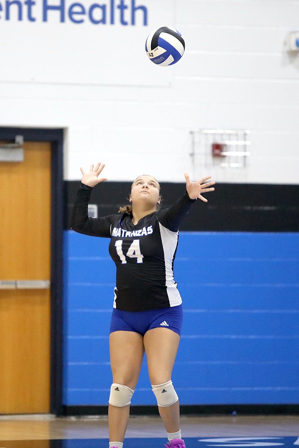 Matanzas junior Sanigh Arneaud serves. Photo by Brent Woronoff