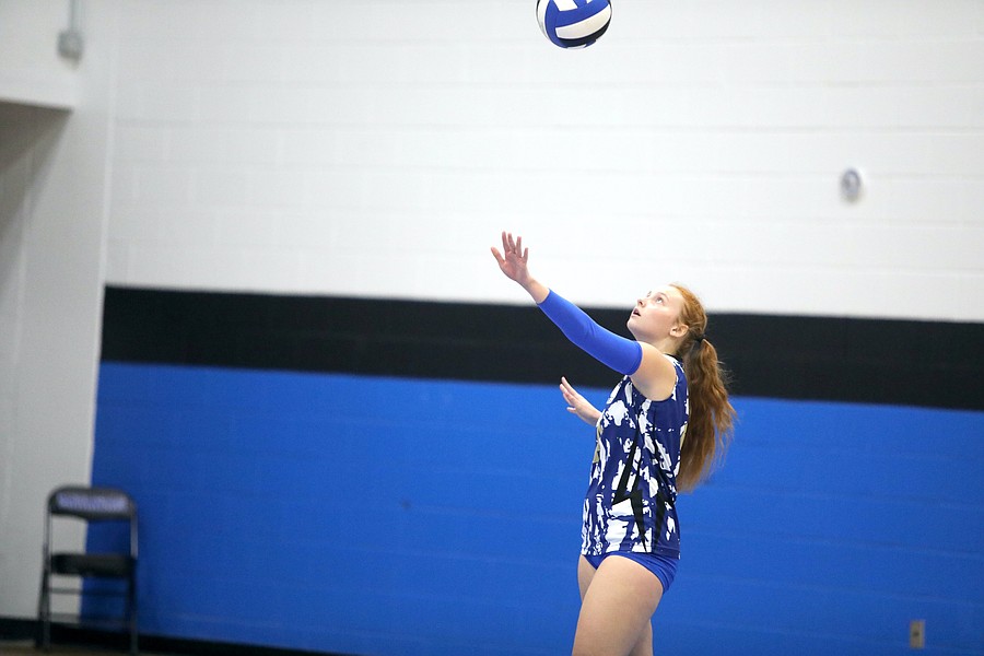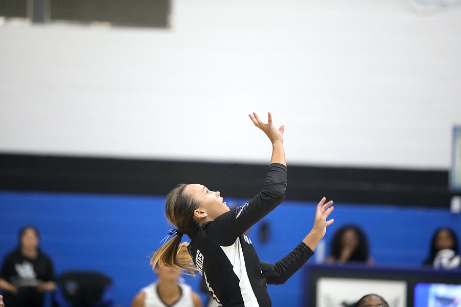 Matanzas co-captain Haley Stewart watches her serve. Photo by Brent Woronoff