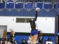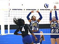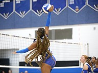 Matanzas middle blocker Ari Allen goes for the kill. Photo by Brent Woronoff