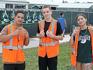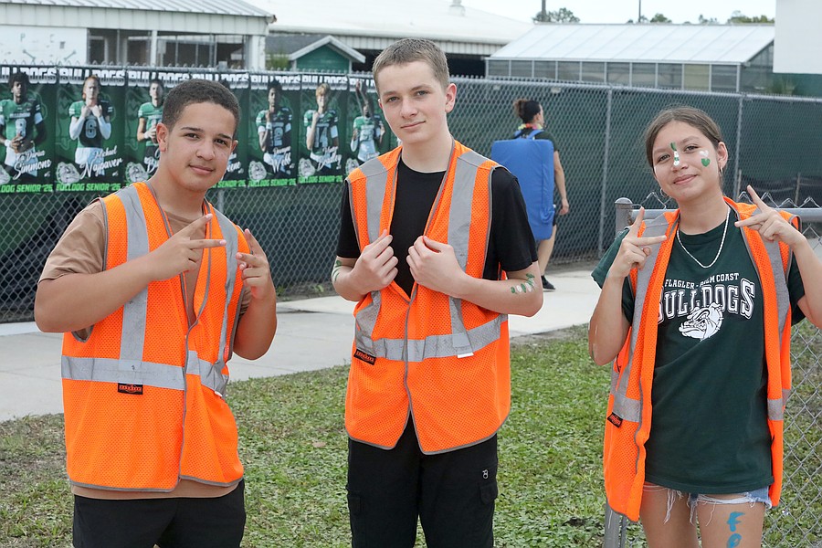Flagler Palm Coast JROTC cadets Liam Vidal, Derek Payne and Isis Ocampo do community service working the gate entering the football field in the Bulldogs' home opener Aug. 29. Photo by Brent Woronoff