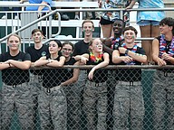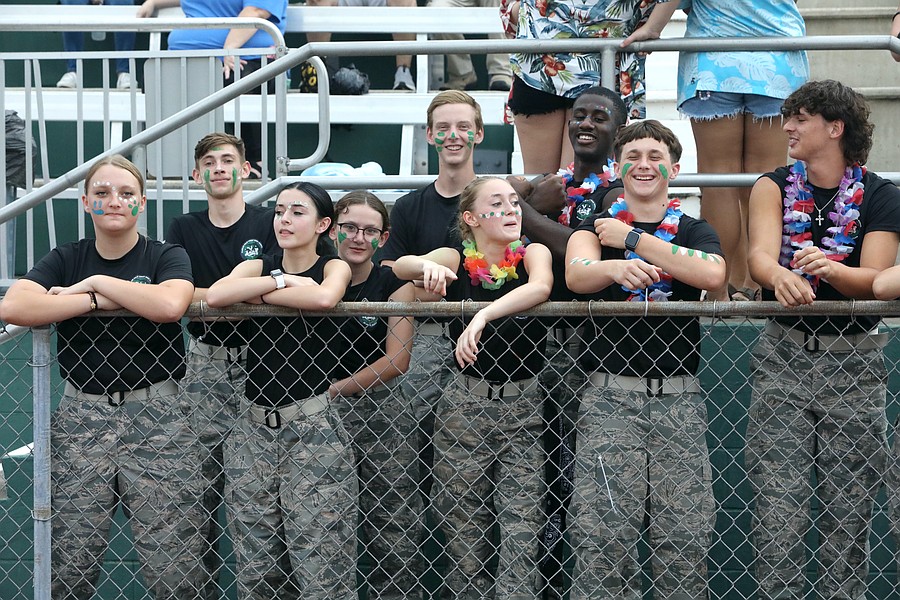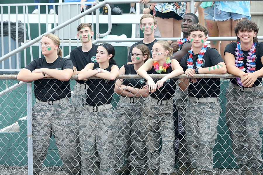 FPC JROTC cadets stand by the fence before the game. Photo by Brent Woronoff