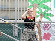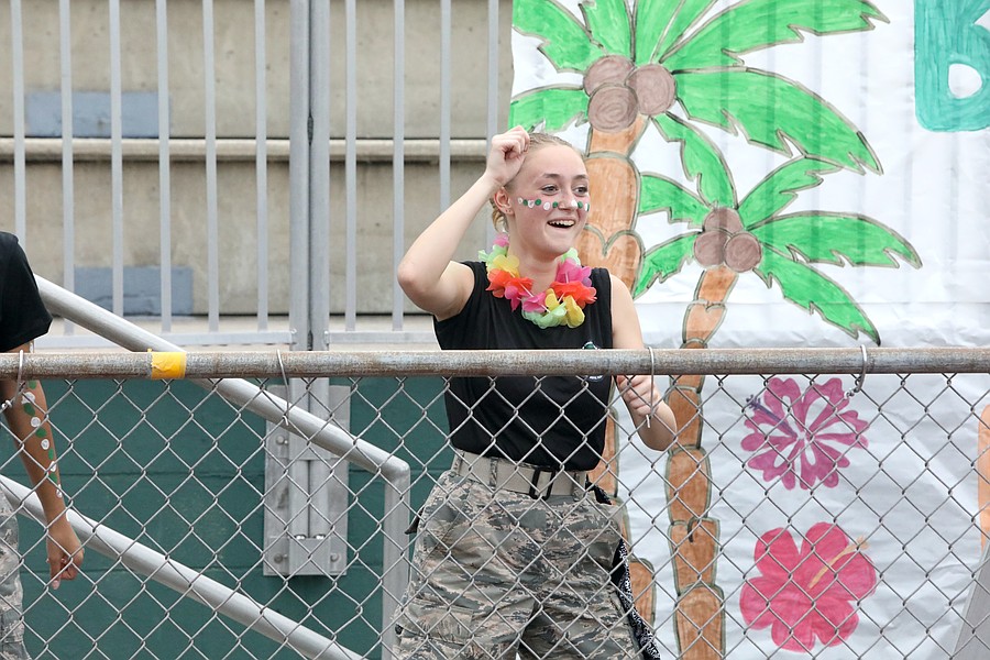 FPC JROTC cadet Kendall Mazzuca cheers for the Bulldogs before the game on tropical night. Photo by Brent Woronoff