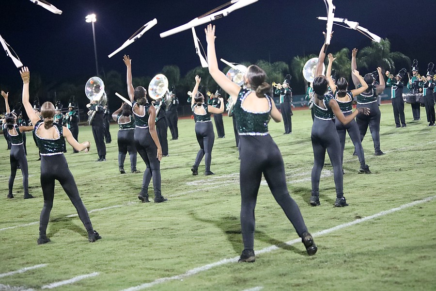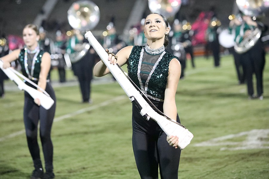 FPC's color guard performs with the band at halftime. Photo by Brent Woronoff