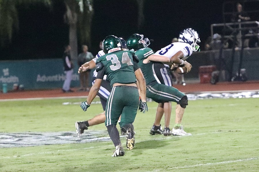 FPC defensive end Caldwell Zwirn sacks Lake Howell quarterback Brycen Marbrey in the fourth quarter. Photo by Brent Woronoff