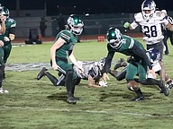 FPC quarterback Caden Burchfield (11) tries to recover a fumble. Photo by Brent Woronoff