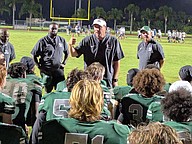 FPC coach Patrick Turner talks to his team after the game. Photo by Brent Woronoff
