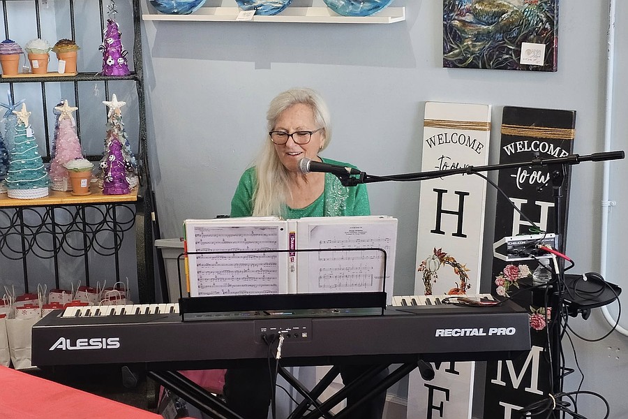 Wendy Burke performs during The Salty Mermaid Art Gallery and Studio's sixth anniversary holiday party. Courtesy photo