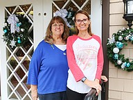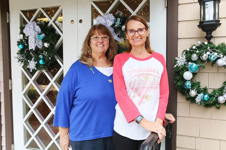 Patty Ferland and Rachel Hacheky help decorate The Casements. Photo by Jarleene Almenas