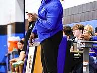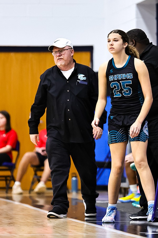 Atlantic coach John Rogers and Jayde Harold (25) on the sideline. Photo by Keishia McLendon