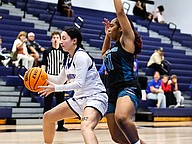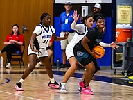 Kaylina Vitt drives on Atlantic's Zhaveya Watson. Photo by Keishia McLendon