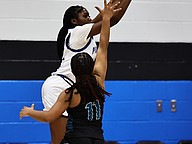 Kyleigh Rainey (right) guards the post. Photo by Keishia McLendon