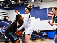 Kaylina Vitt posts up on Atlantic's Zhaveya Watson. Photo by Keishia McLendon