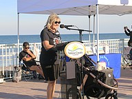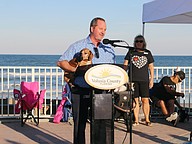 Nanette McKeel Petrella recognizes her husband, Bert, during the ribbon-cutting ceremony for the new dog beach in Daytona. Photo by Jarleene Almenas