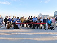 Daytona Dog Beach and Volusia County representatives cut the ribbon for the new dog beach in Daytona. Photo by Jarleene Almenas