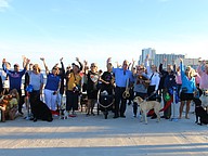 Daytona Dog Beach and Volusia County representatives wave to a drone after cutting the ribbon for the new dog beach in Daytona. Photo by Jarleene Almenas
