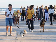 People walk on the beach with their dogs in the new Daytona dog beach. Photo by Jarleene Almenas