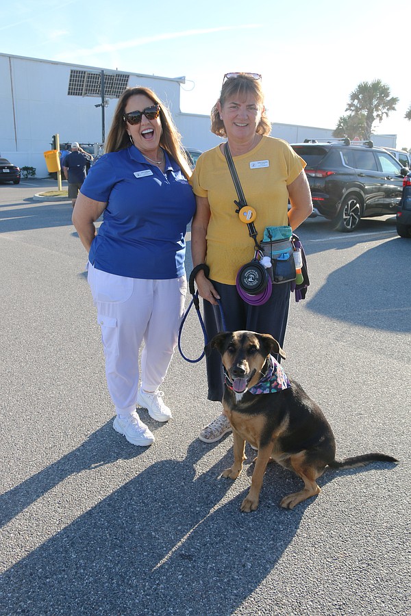 Daytona Dog Beach board members Jami Gallegos, director of advocacy and partnerships, and Debi Coursey, treasurer, with her dog Duchess. Photo by Jarleene Almenas