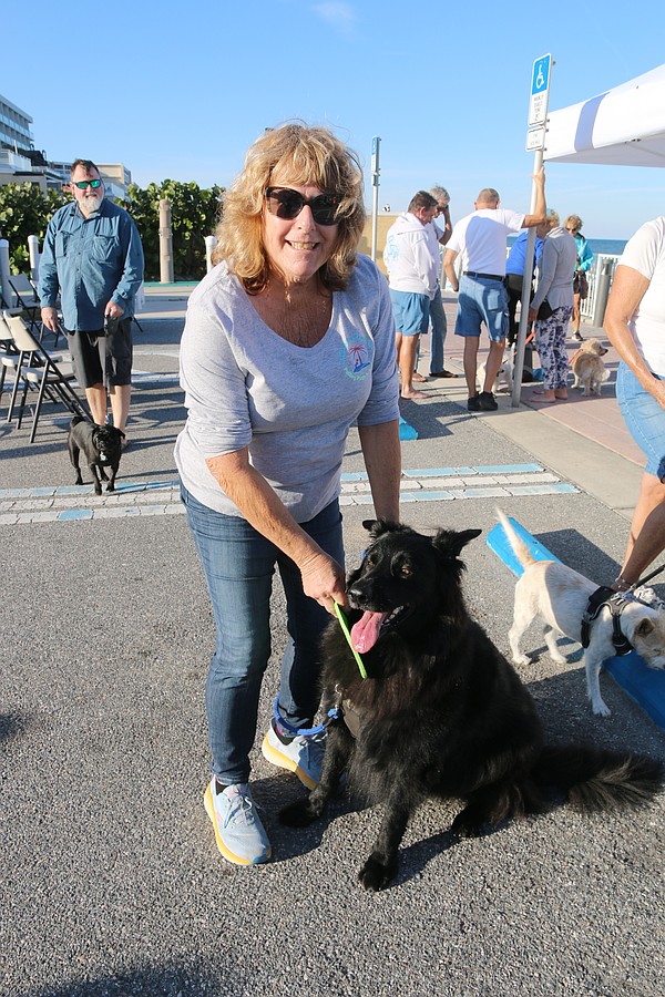 Debbie Keese and her dog Ohana attend the ribbon-cutting ceremony for the new dog beach in Daytona. Photo by Jarleene Almenas