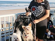 Daytona Dog Beach Nanette McKeel Petrella with her pups, Mac, Delilah and Samson. Photo by Jarleene Almenas