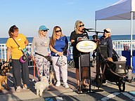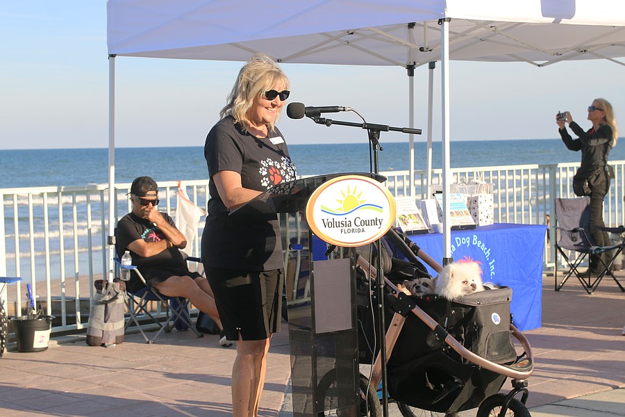 Daytona Dog Beach President Nanette McKeel Petrella speaks during the ribbon-cutting ceremony for the new dog beach in Daytona. Photo by Jarleene Almenas