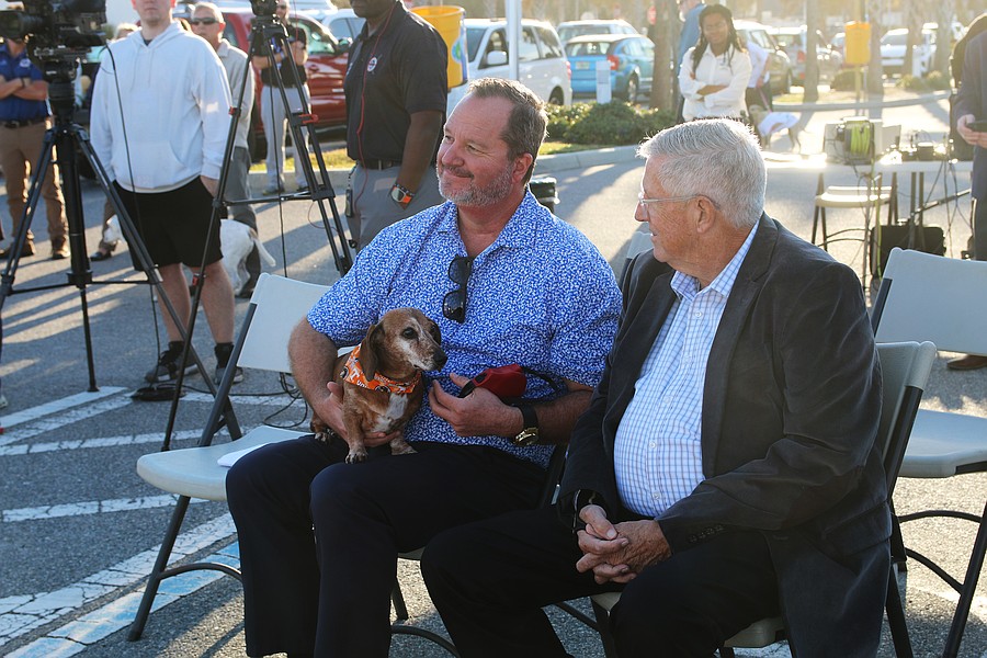Volusia County Councilman Troy Kent, and his dog Miss Daisy, and Daytona Beach City Commissioner Ken Strickland. Photo by Jarleene Almenas
