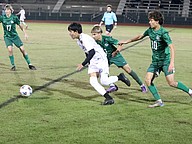 FPC forward River Rodriguez (9) takes a shot on goal. Photo by Brent Woronoff