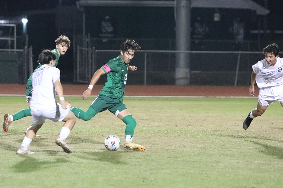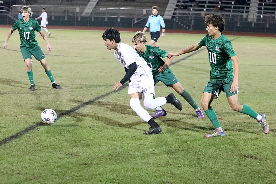 FPC's Dylan Hardesty (17), Jack Runnoe (7) and Rami Amiri (10). Photo by Brent Woronoff