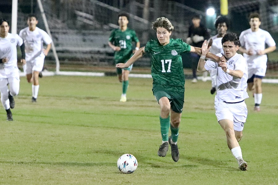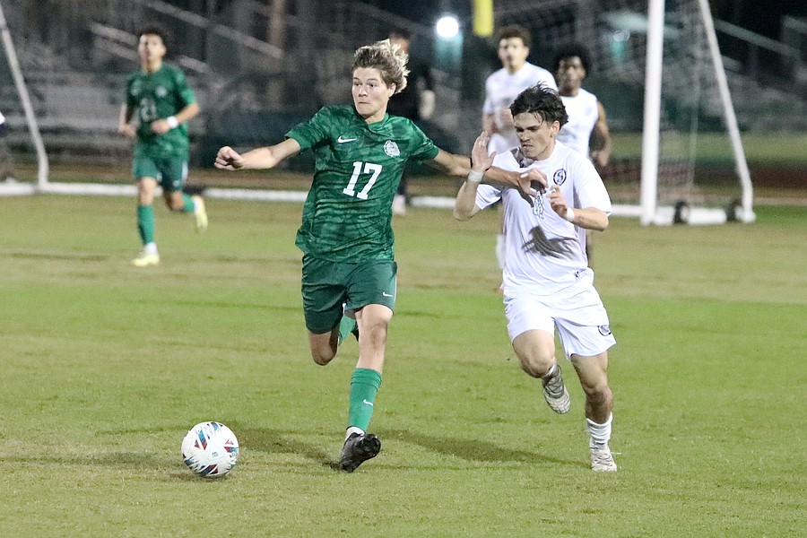 Jonny Perez scored a goal off a free kick with less than a minute left in the game to give Flagler Palm Coast a 2-1 victory over Jacksonville Sandalwood on Wednesday, Dec. 3, at FPC's Sal Campanella Stadium.