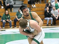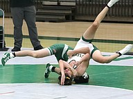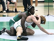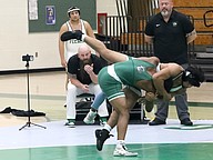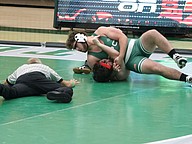 Doyvonne Leadon throws his opponent. Leadon won the 190-pound match with a pin at 2:31. Photo by Brent Woronoff