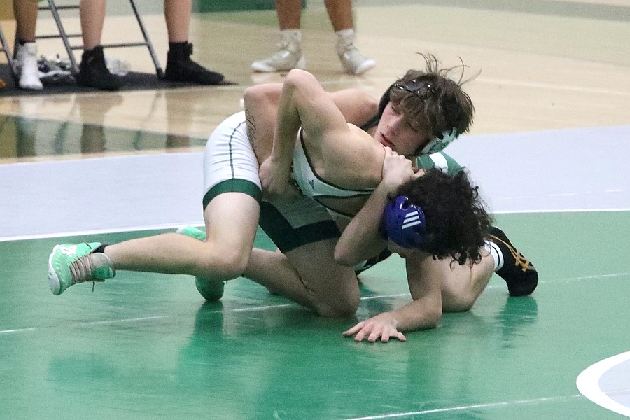 Kevin McLean (right) won the 120-pound match. Photo by Brent Woronoff