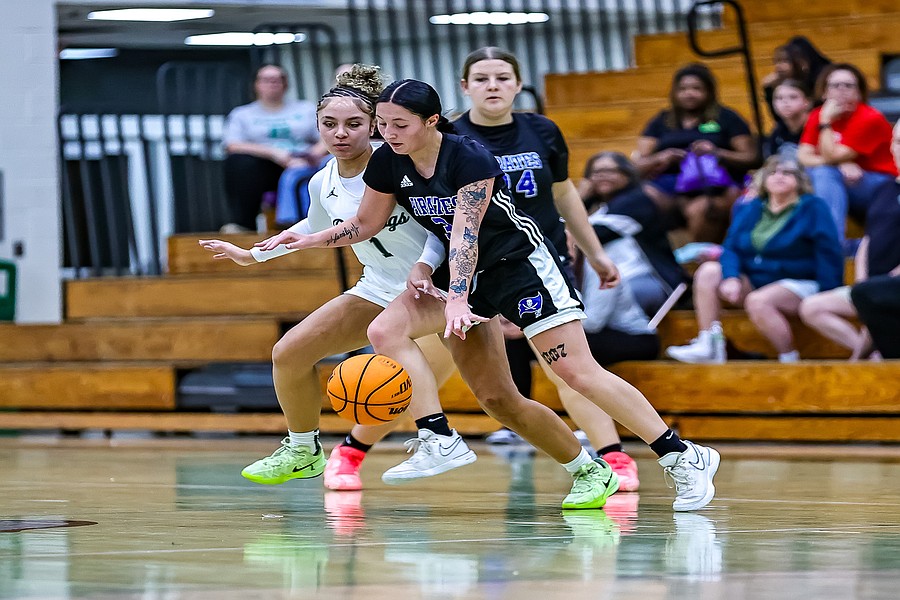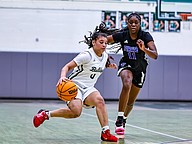 FPC's Stephanie Turner drives past Efredia Wesee. Photo by Keishia McLendon