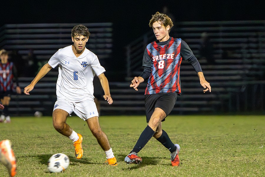 Seabreeze's Luke Harrell maintains focus on the ball. Photo by Sydney Tevin