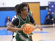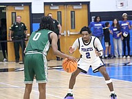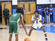 Jez McCoy crosses midcourt. Photo by Brent Woronoff
