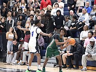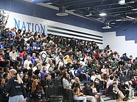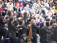 Fans remain in their seats during a timeout. Photo by Brent Woronoff