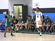 Anthony Hampton looks for an open teammate. Photo by Brent Woronoff