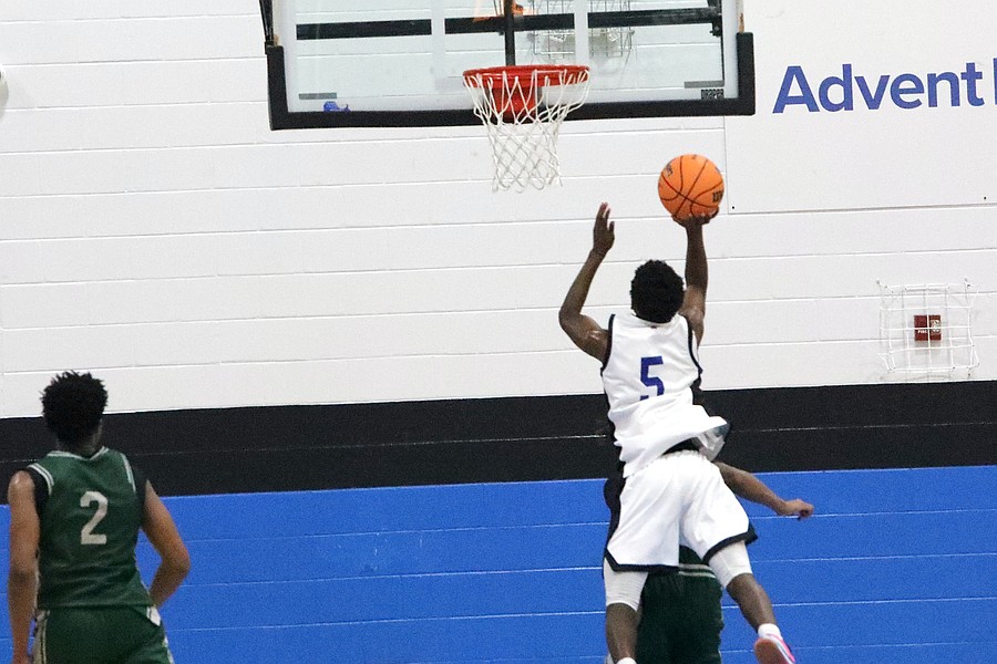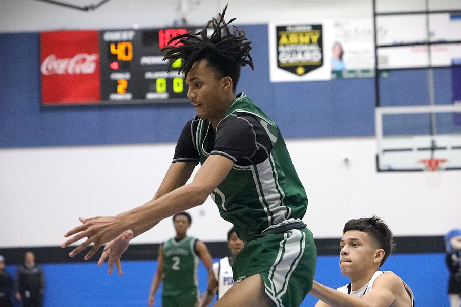Jayden McCoy gets the steal and dribbles downcourt for a fastbreak layup. Photo by Brent Woronoff