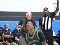 FPC coach Greg Shirley questions a foul call. Photo by Brent Woronoff