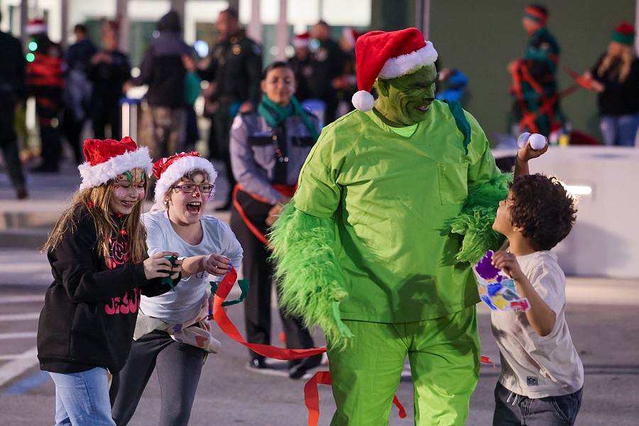The children had a holiday party first at the Flagler County Sheriff's Office Operations Center, where they played holiday games and could meet Santa Claus and the Grinch.