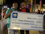 Daytona Beach Mayor Derrick Henry presented checks to multiple schools who receive 'A' ratings this year. Pictured: Champion Elementary School Principal Steffan Mallory with Mayor Henry. Photo courtesy of Daytona Beach