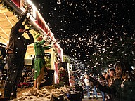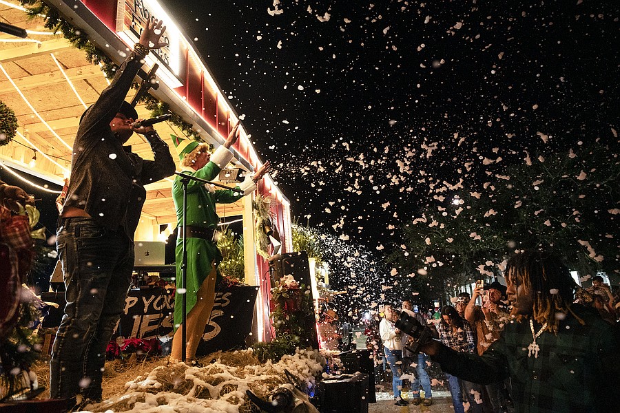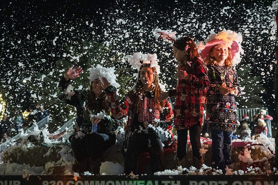 The Abaco Windows float spews out snow as Redeemed performs at the 34th annual HOme for the HOlidays parade on Saturday, Dec. 13. Photo by Michele Meyers