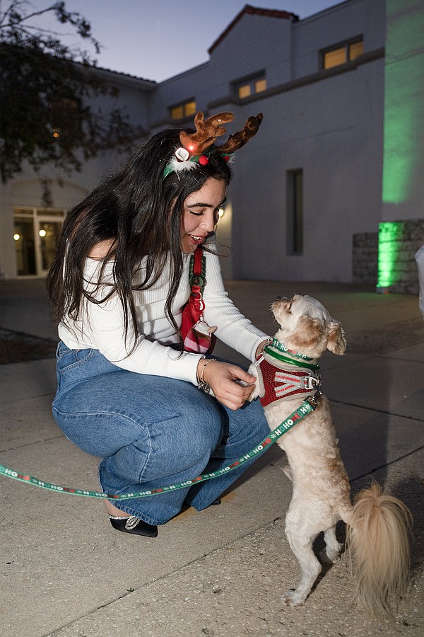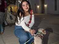 Baily Santiago (left) hangs out with Tony before the lighting of the Christmas tree and the 34th annual HOme for the HOlidays parade on Saturday, Dec. 13. Photo by Michele Meyers