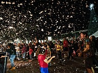 People sing and dance as Redeemed performs at the 34th annual HOme for the HOlidays parade on Saturday, Dec. 13. Photo by Michele Meyers