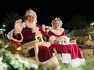 Santa and Mrs. Claus ride in on the winning Abaco Windows float at the 34th annual HOme for the HOlidays parade on Saturday, Dec. 13. Photo by Michele Meyers