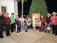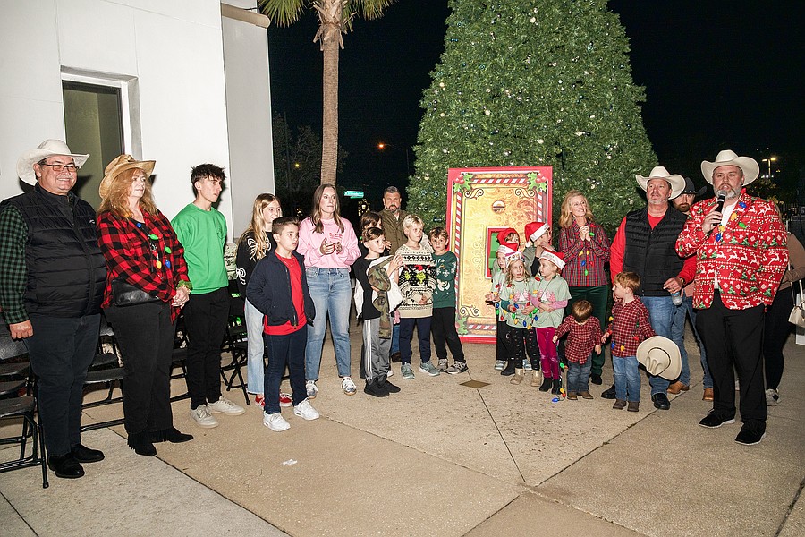Mayor Jason Leslie is joined by city commissioners Harold Briley, Kristen Deaton, Travis Sargent, deputy mayor Lori Tolland and Troy Kent along with their families for the Christmas tree lighting before the 34th annual HOme for the HOlidays parade on Saturday, Dec. 13. Photo by Michele Meyers