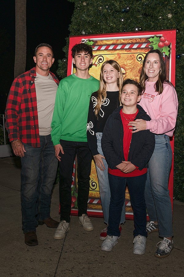 City commissioner Zone 3 Kristen Deaton (right) and husband Kyle (left) pose with their family in front of the Christmas tree before the 34th annual HOme for the HOlidays parade on Saturday, Dec. 13. Photo by Michele Meyers