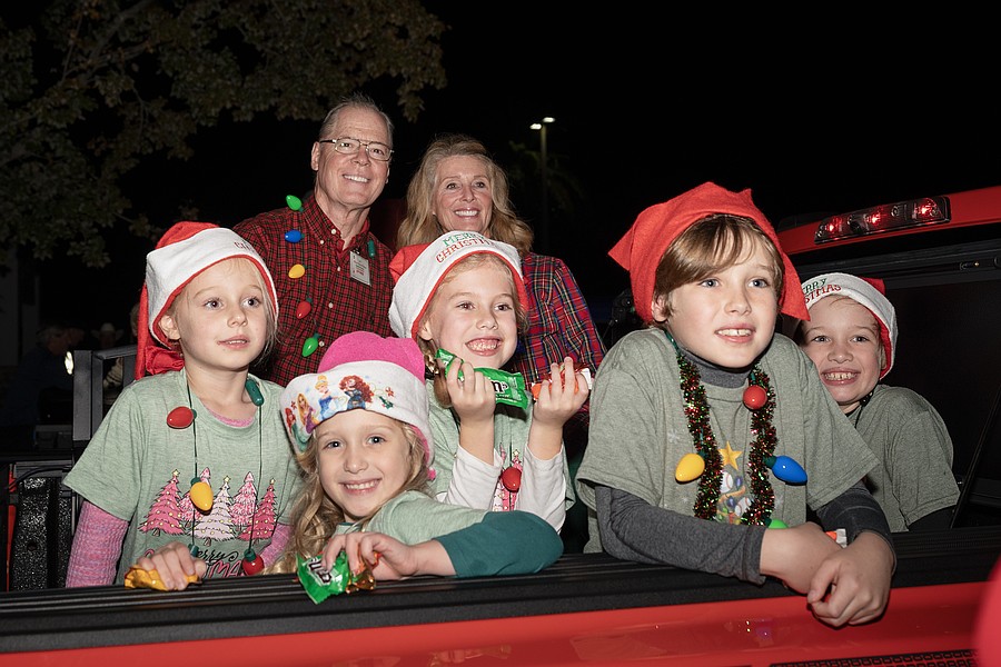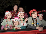 City commissioner Zone 2 Travis Sargent (back center) his wife Susan (back right) and family members get ready to join the 34th annual HOme for the HOlidays parade on Saturday, Dec. 13. Photo by Michele Meyers