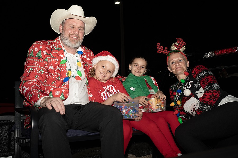 Mayor Jason Leslie (left) is joined by his sister Kelly (right) and his nieces Dallas and Malavaya at the 34th annual HOme for the HOlidays parade on Saturday, Dec. 13. Photo by Michele Meyers