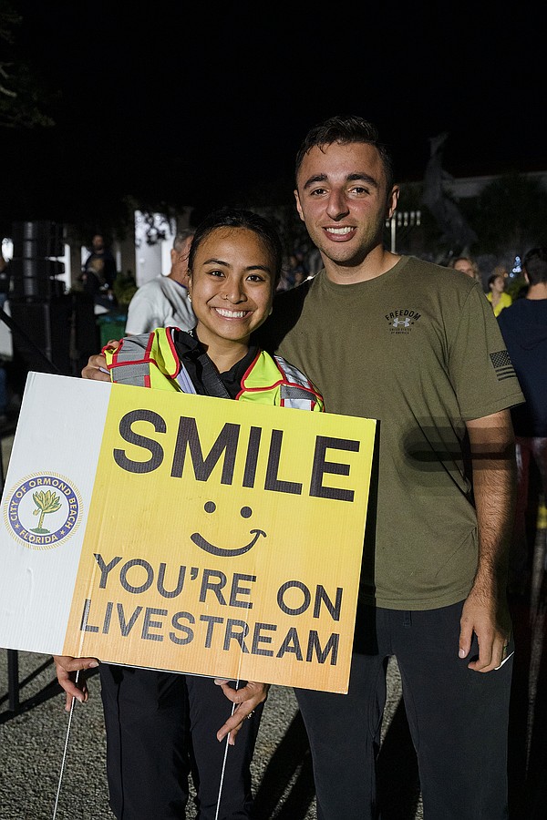 Ormond Beach Public Information Officer Pauline Dulang (left) and Jake Spinale (right) prepare to take photos and video of the 34th annual HOme for the HOlidays parade on Saturday, Dec. 13. Photo by Michele Meyers